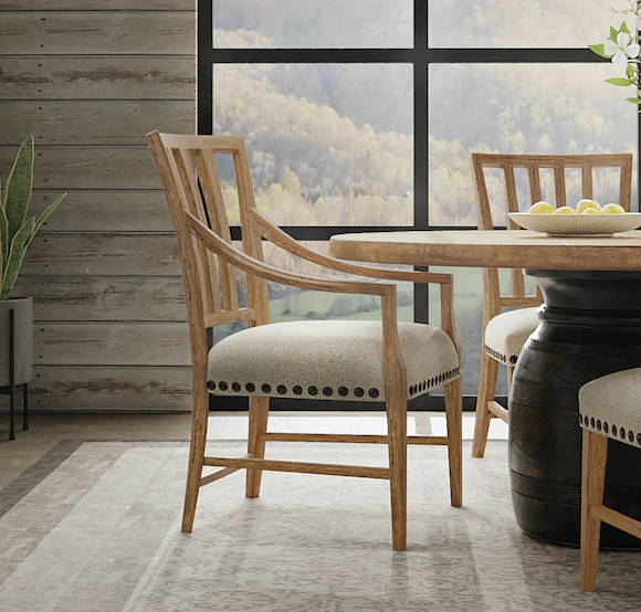 Inspired by the natural beauty of the American wilderness and artistry of craftspeople, the Big Sky Stool has a vintage design featuring a shaped wood seat and metal legs and stretchers. The stool seat is finished in a warm natural finish over rustic Hickory Veneers. The natural beauty and near mystical experience of the American wilderness inspires a spirited collection from Hooker Furniture, a celebration of dramatic vistas and the freedom to roam, a land of rough-hewn timber and towering snow-capped peaks, boundless plains, and cool, clear mountain lakes. Hooker brings home a dream of wide-open spaces and a life lived in tandem with iconic landscapes with furnishings that evoke the weight, heft and heritage of post and beam construction, the mark and artistry of true craftspeople, and substantive, thoughtful designs right for today. Watch for warm, rustic, hickory veneer, and rich finishes like charred timber, dusk, and avalanche, organic textures like burlap and top grain leather, forged hardware, and classic moldings for the traditionalist. Those with a more modern bent will gravitate toward the clean lines of waterfall edges, crosshatch surfaces and planking details that speak to authenticity and the hand of the maker. Welcome to the peaceful, easy feeling of Big Sky. It’s time to simply breathe.