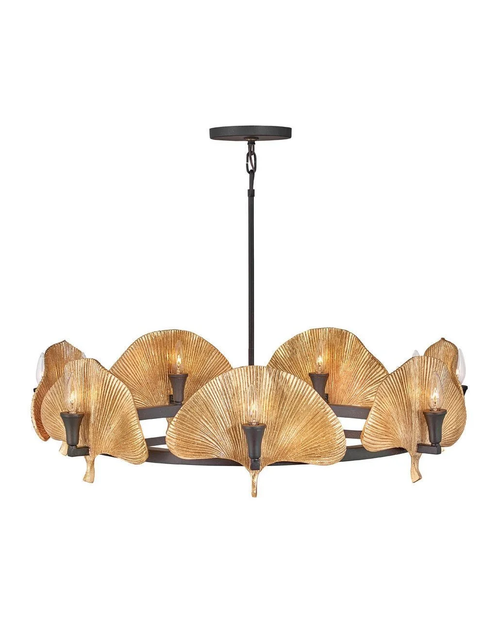Paying homage to the ornamental Ginkgo tree, Cera's intricate cast leaves help awaken an elegant decor, while its Bronze finish against Cleopatra Gold blossoms chic allure throughout a space.