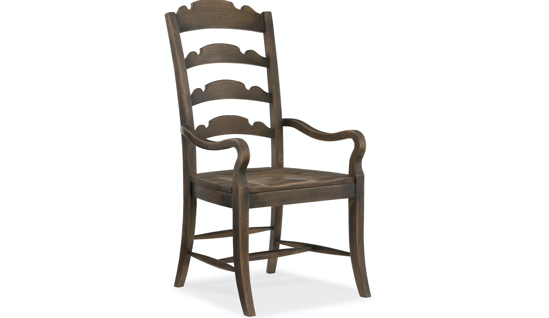 You will want to linger and gather for hours as you break bread or visit with family and friends in the Comfort Upholstered Arm Chair. The seat is upholstered in an aniline top grain leather, and the back is in a woven, desert-colored fabric, and both are accented with bronze nailhead trim. The bobbin-style stretchers and legs add authenticity. Inspired by the most beautiful examples of American countryside, Hooker Furniture's Hill Country Collection imparts an authentic American character. Hill Country is a collection of bedroom, dining, home office and accent furniture crafted of flat-cut rustic white oak veneer that is cracked before the finish is applied to appear seasoned over time.